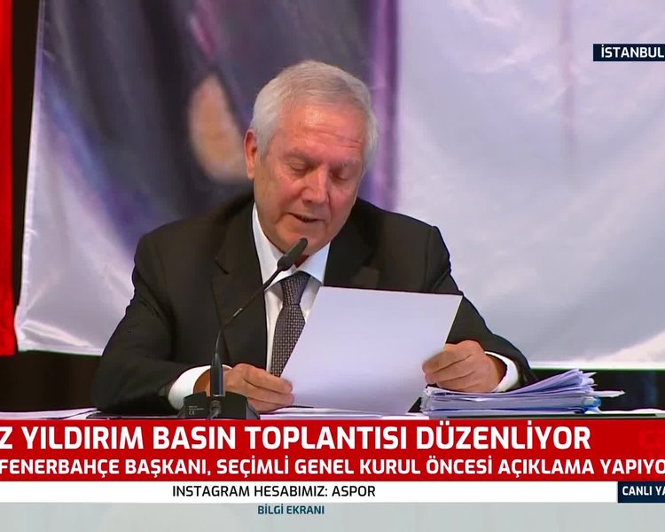 Aziz Yıldırım Basın Toplantısı - Kchyh7oz Dikbm : Fenerbahçe kulübü başkanı aziz yıldırım, gündemdeki konulara ilişkin basın toplantısı düzenledi.. Aziz yıldırım, basın toplantısına ilişkin yaptığı duyuruda, hepimizin ortak sevdası olan fenerbahçe'nin dünü, bugünü ve yarını üzerine konuşacağımız bir basın toplantısı yapıyorum. ifadelerini kullandı. Fenerbahçe'den yapılan açıklamaya göre basın toplantısı 24 nisan salı günü saat 14:00'da yapılacak. Özgür basın mensupları olarak bu anlamda yaptığınız vazifenin önemi aşikardır. Kongre öncesi basın toplantısı düzenleyecek olan aziz yıldırım'ın gündeme dair önemli açıklamalar yapması beklenirken, basın toplantısının yeri ve zamanına dair bilgiler henüz netleşmedi. Fenerbahçe eski başkanı aziz yıldırım, basın toplantısı ile kamuoyunun karşısına çıkacak.